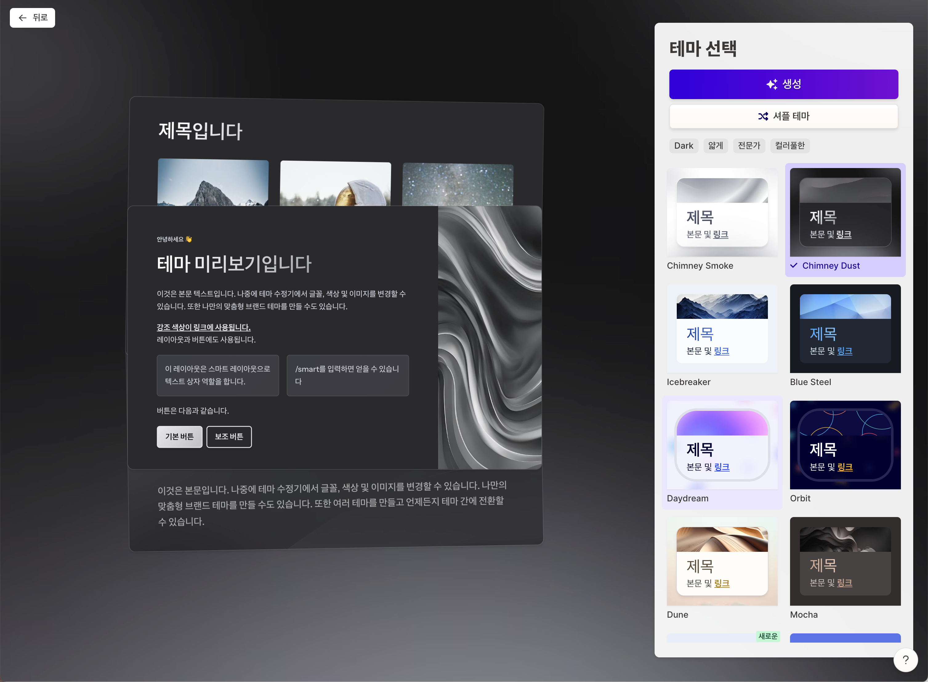 원하는 테마를 선택하고 생성 버튼을 클릭합니다.