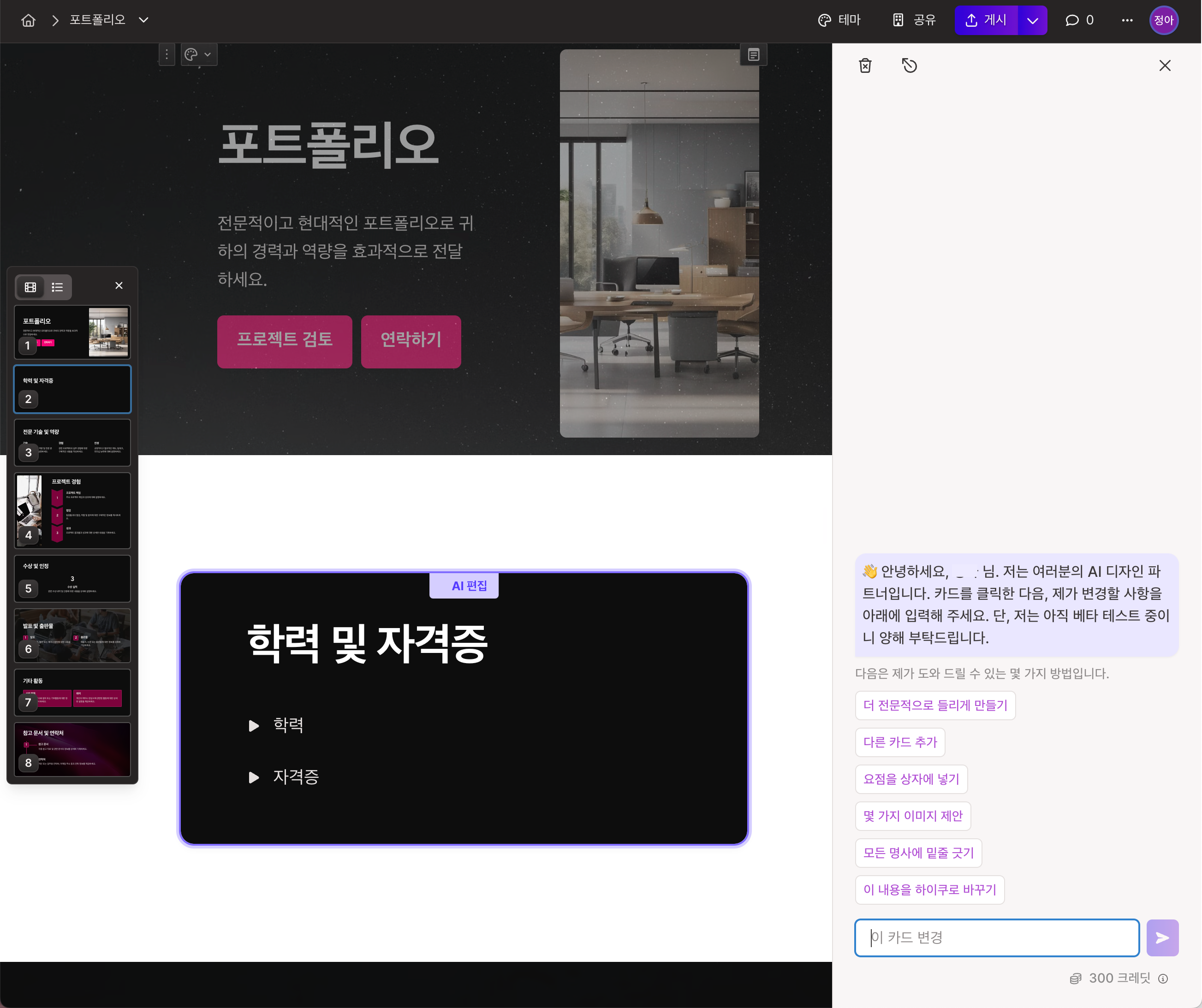 대화창에 변경할 사항을 입력하여 수정해 보세요.