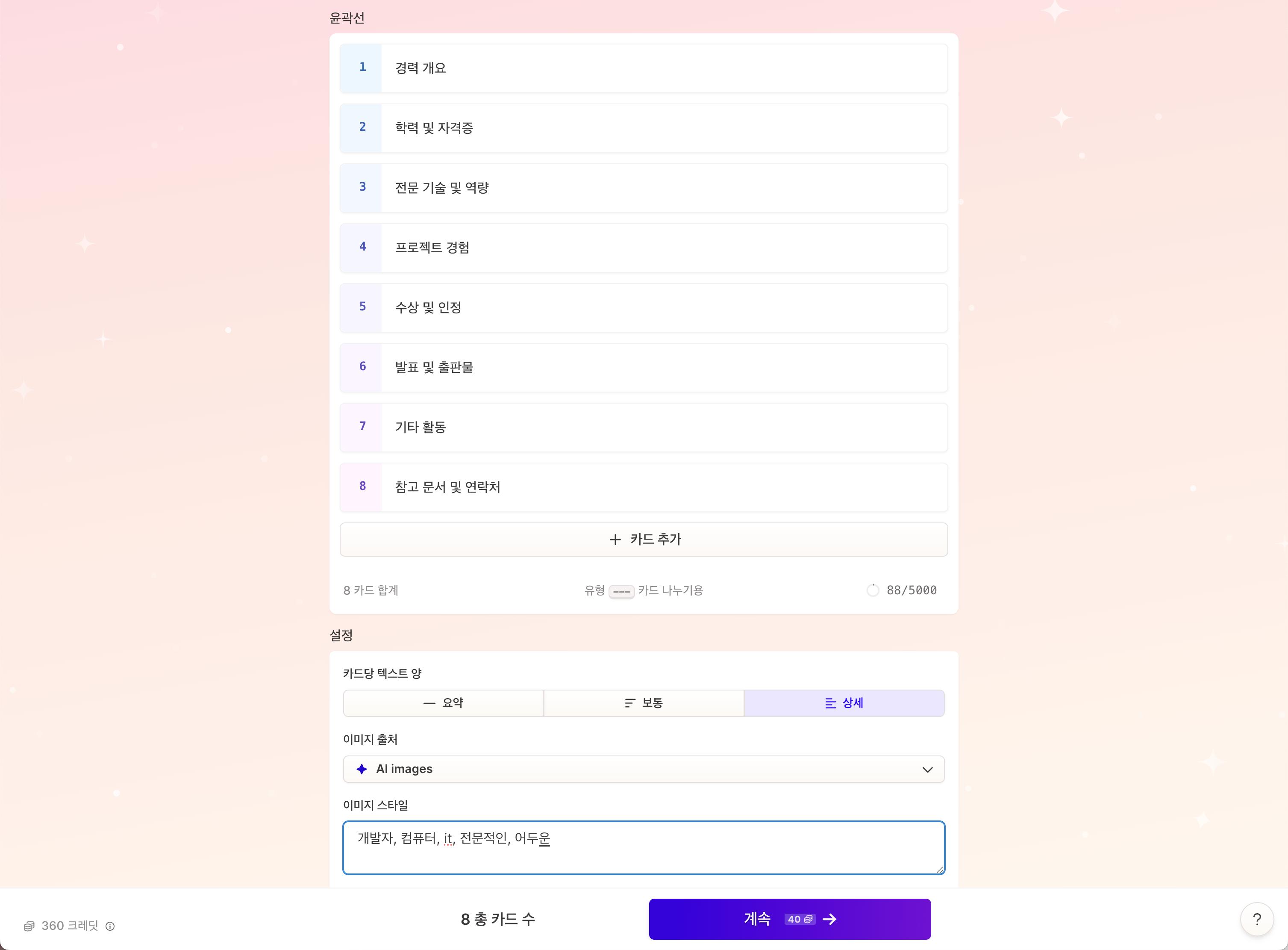 AI 생성을 기반으로 한 간편한 인터페이스를 통해 PPT, 문서, 웹사이트를 신속하게 제작할 수 있어, 창의적인 아이디어를 효과적으로 발표하고 공유할 수 있습니다. 따라서, Gamma를 활용하여 아이디어를 현실로 구현해 보세요. 이렇게 Gamma에 대해서 알아보았습니다.