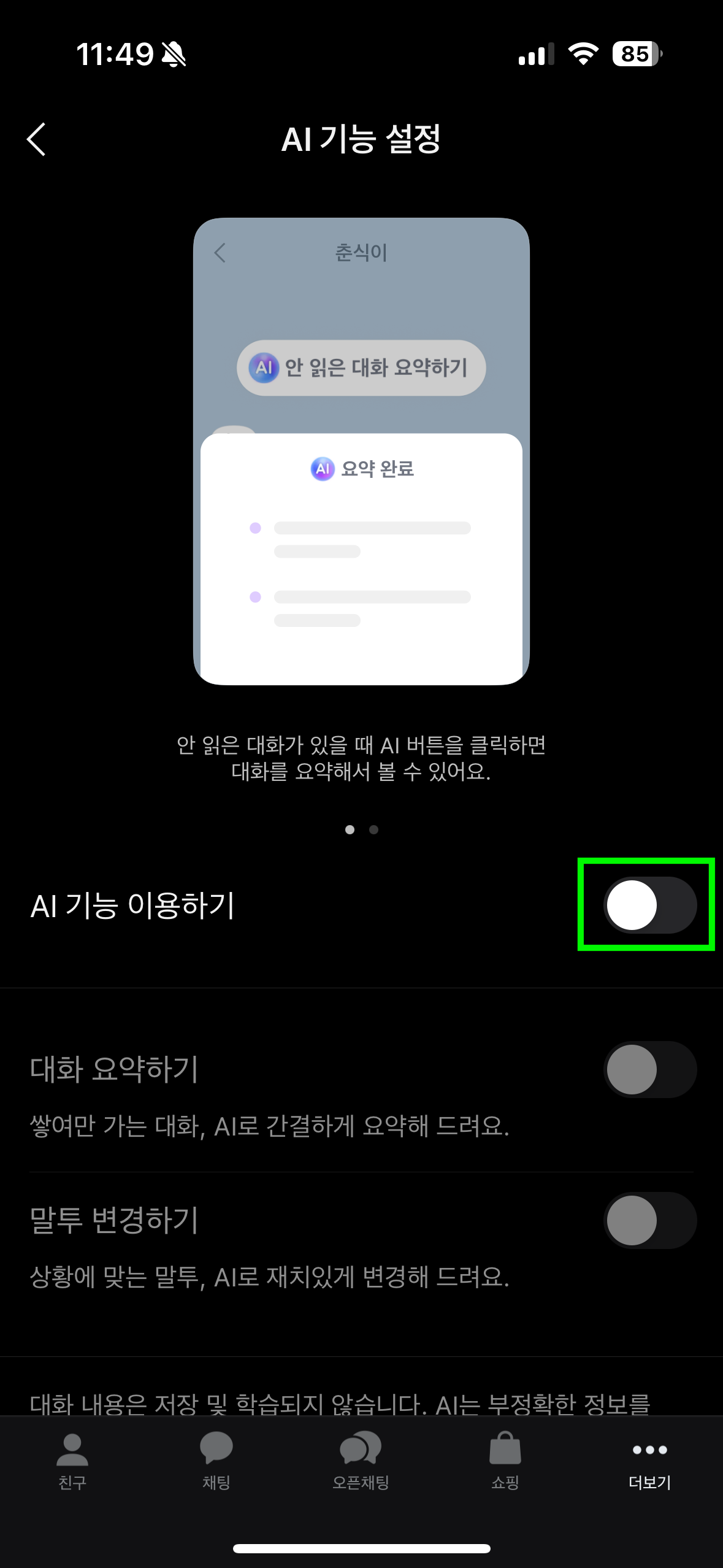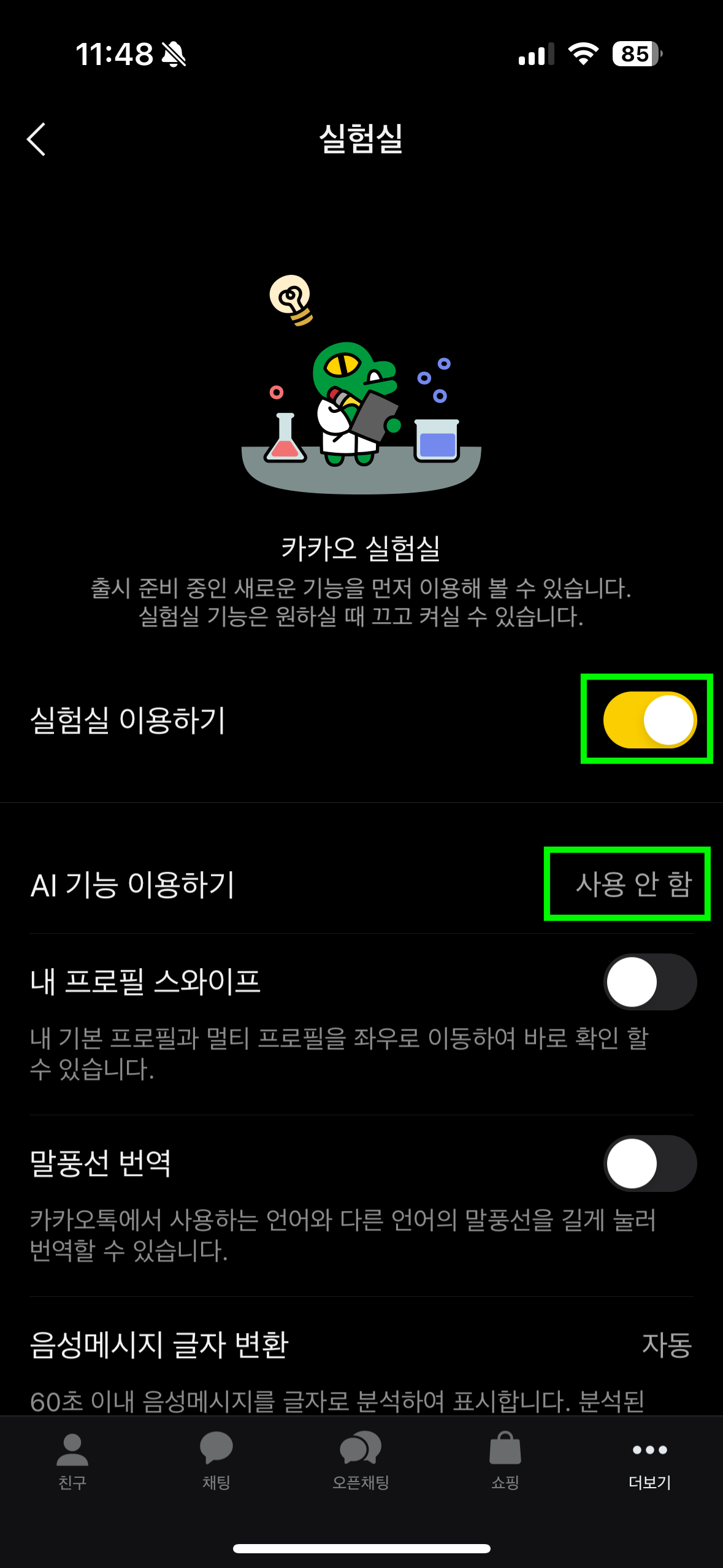카카오톡 실험실의 AI 기능 설정하는 방법