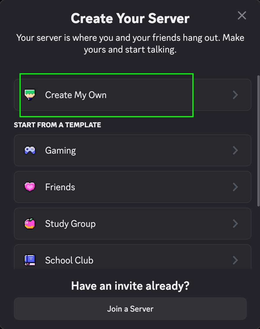 2. Create My Own을 클릭해 주시고 나만의 서버 공간을 만들어주세요.