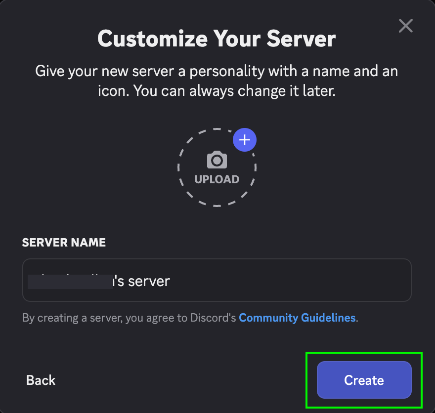 4. 마지막 단계로 서버 이름(SERVER NAME)을 입력해 주시고 Create 버튼을 클릭하여 서버를 생성하세요.