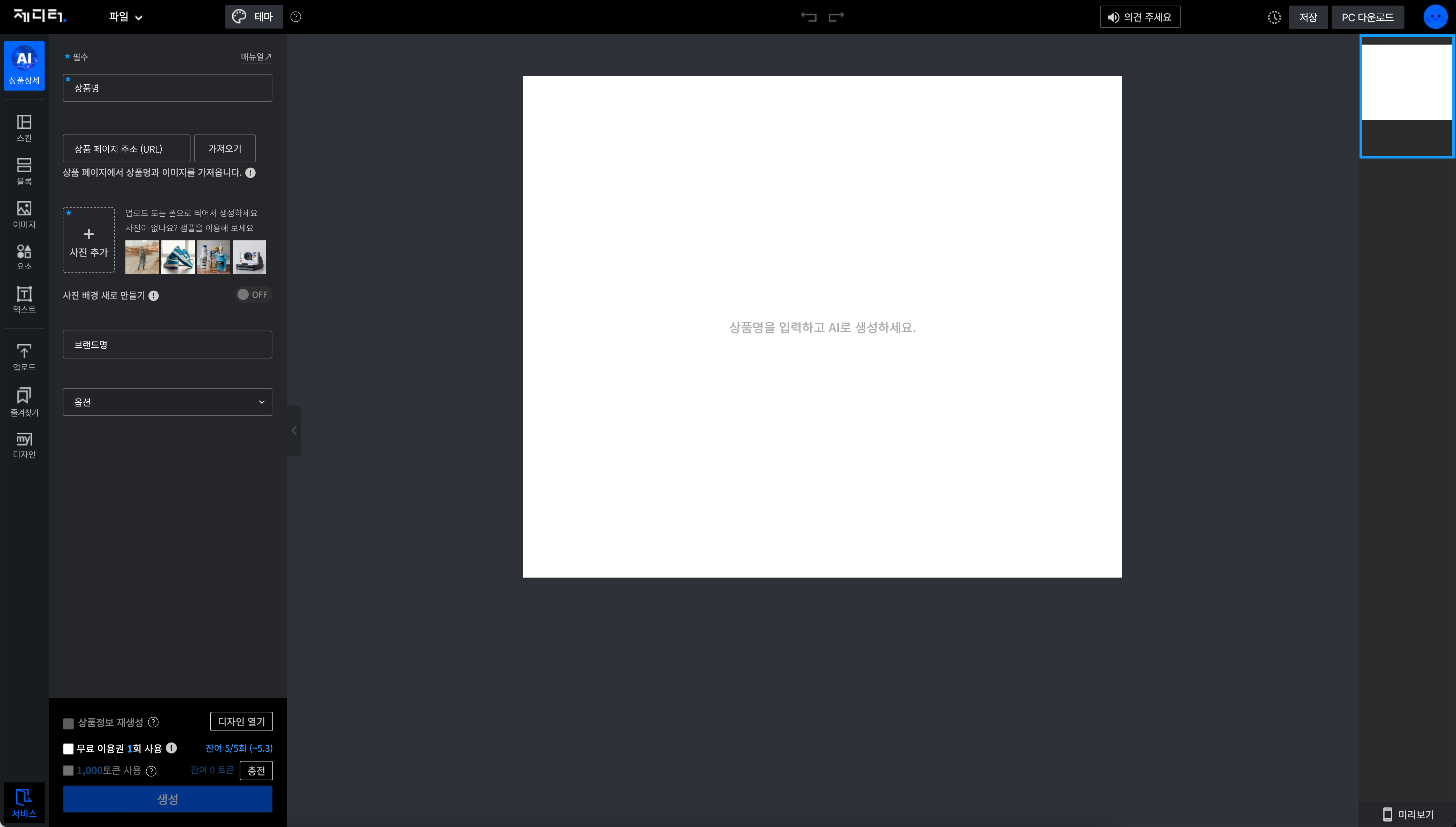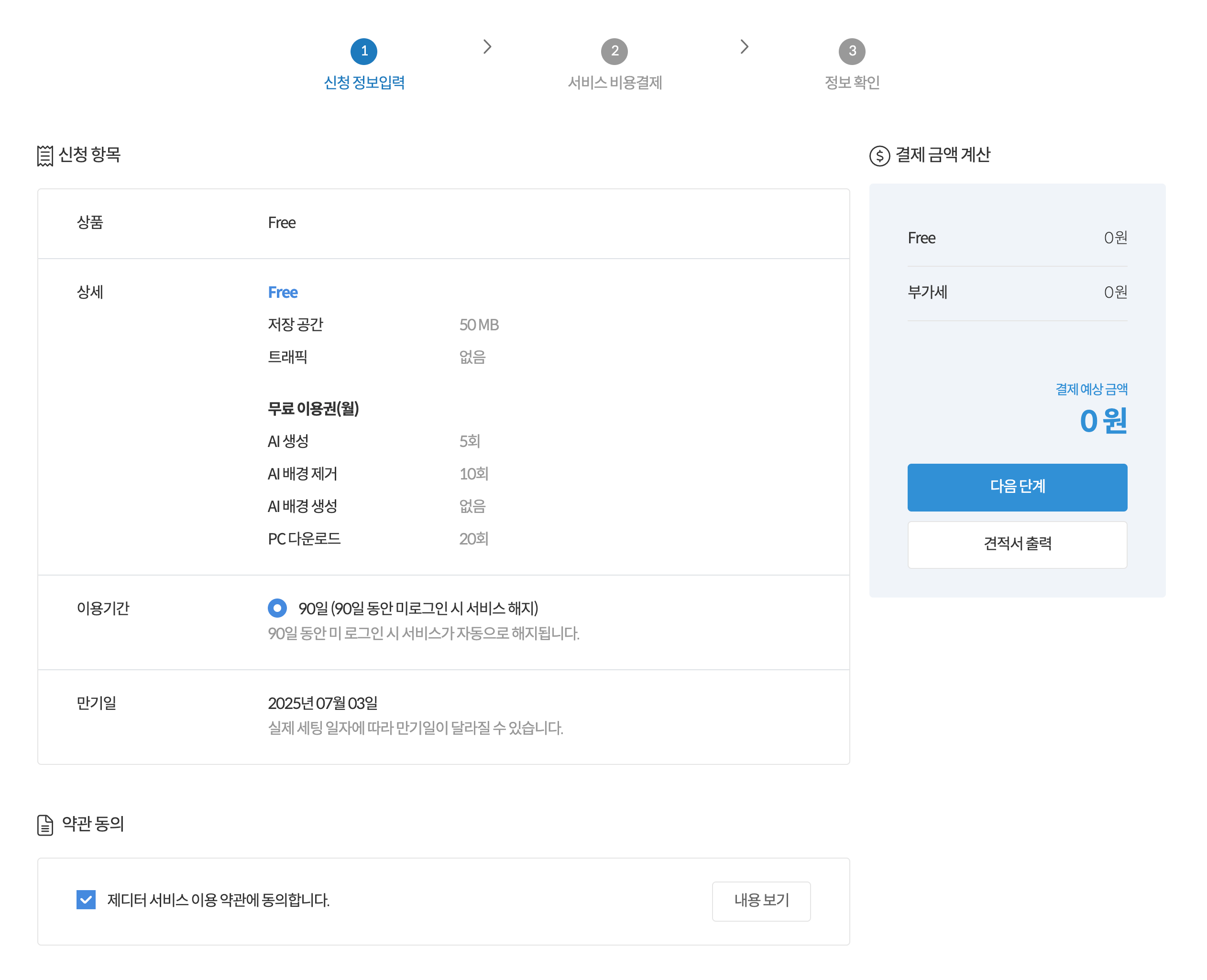 먼저 제디터 AI 사이트에 접속하여 회원가입을 합니다. 이후 로그인하면 AI 상세페이지 생성 기능을 사용할 수 있습니다.
