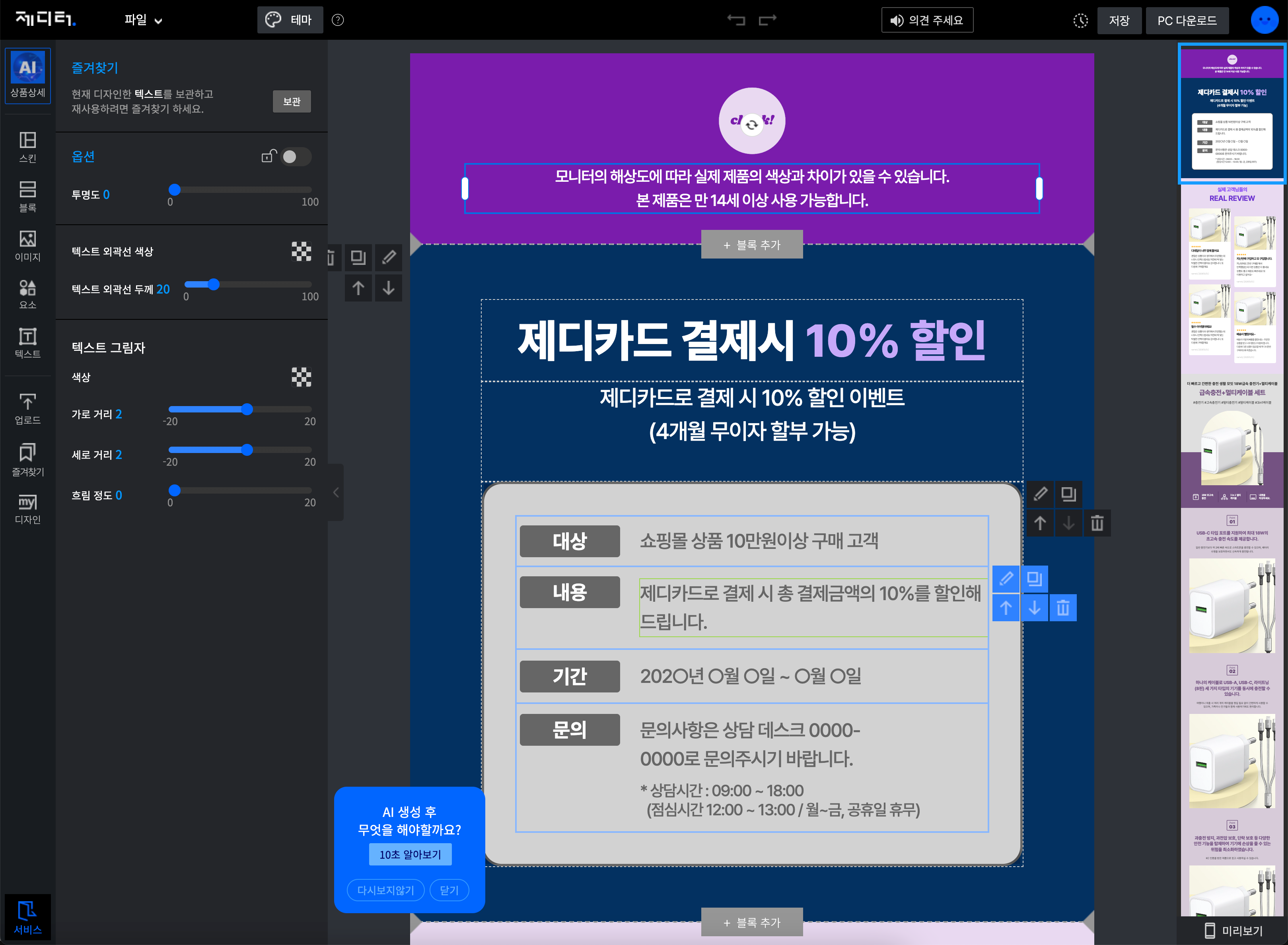 더 자세한 사용 방법과 기능에 대한 설명은 제디터 AI 메뉴얼을 참고하세요.