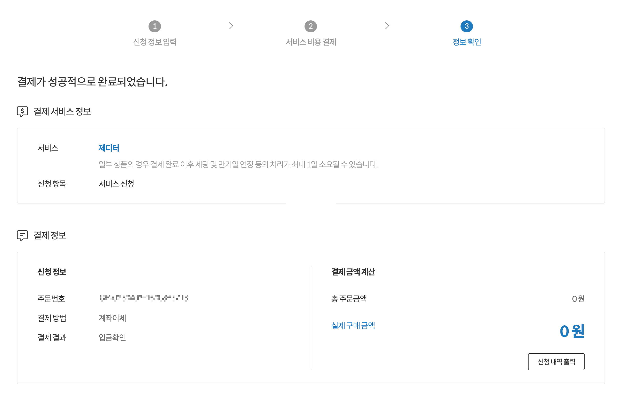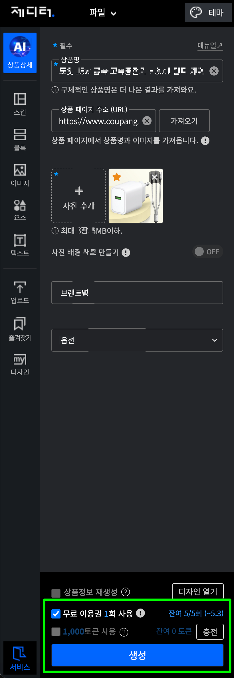 4. 무료 이용권 클릭하고, 생성 버튼 클릭하면 상세페이지가 생성됩니다.