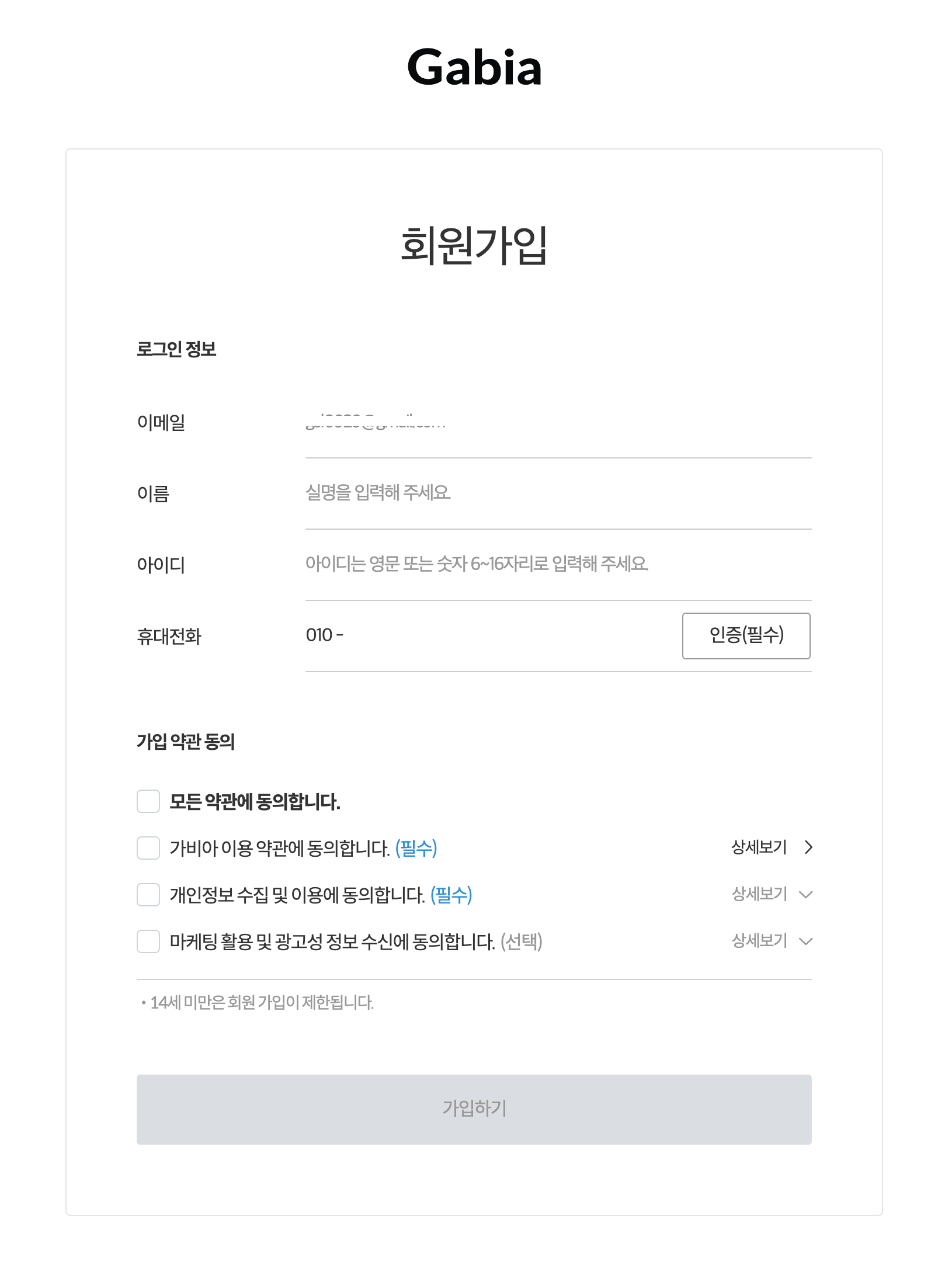 무료신청하기를 통해 서비스를 체험해 보겠습니다. 우선 가비아 계정이 필요합니다.