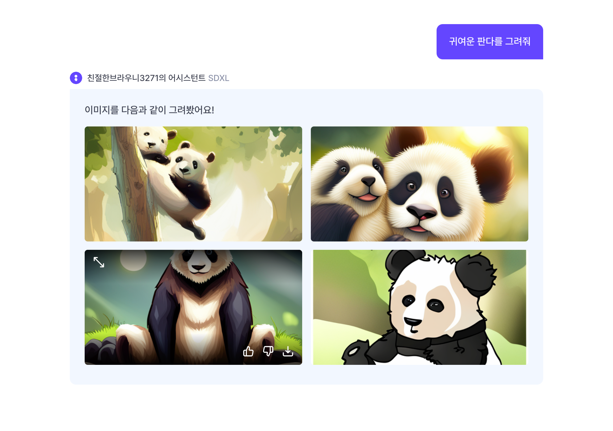 구체적으로 묘사할수록 더 좋은 퀄리티의 이미지를 그릴 수 있습니다.