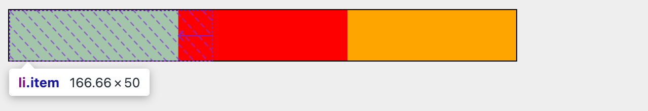 flex-grow를 1로 설정하여 여유공간 만큼 .item 요소가 늘어나는 경우를 추가하면 너비값은 150px이 적용됩니다.