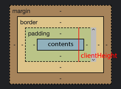 해당 요소의 내부 높이를 반환합니다. 콘텐츠(contents)와 패딩(padding)을 포함하지만 테두리, 스크롤바는 제외합니다.