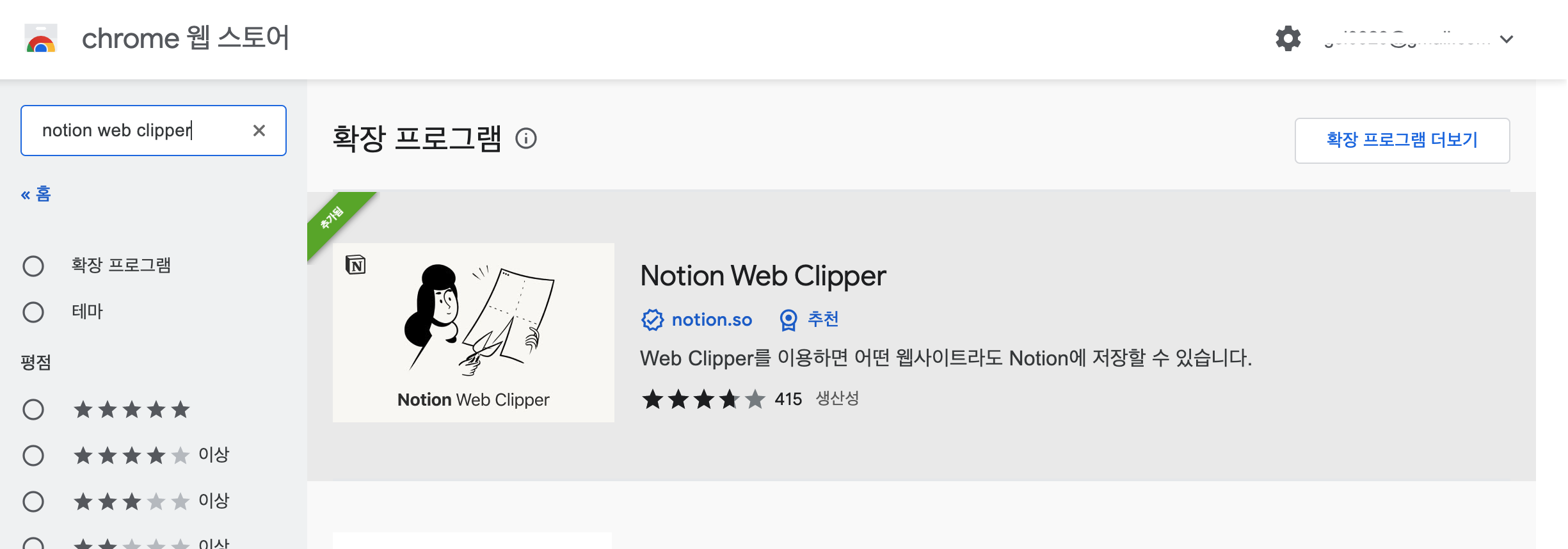 크롬 웹 스토어에 접속하셔서 Notion Web Clipper를 검색하세요!