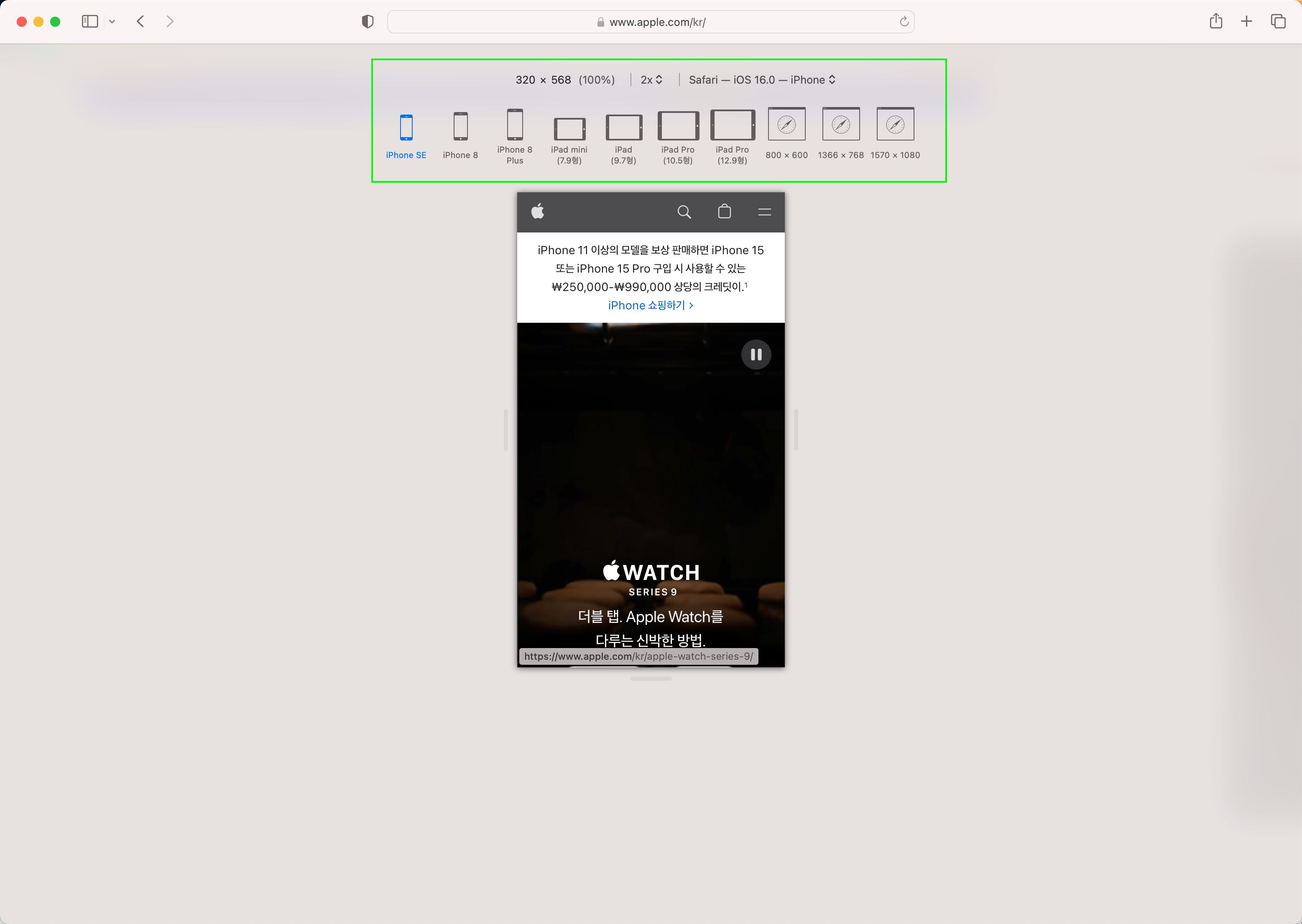 디바이스를 한 번 더 클릭하시면 가로 모드(landscape)로 보실 수 있습니다.