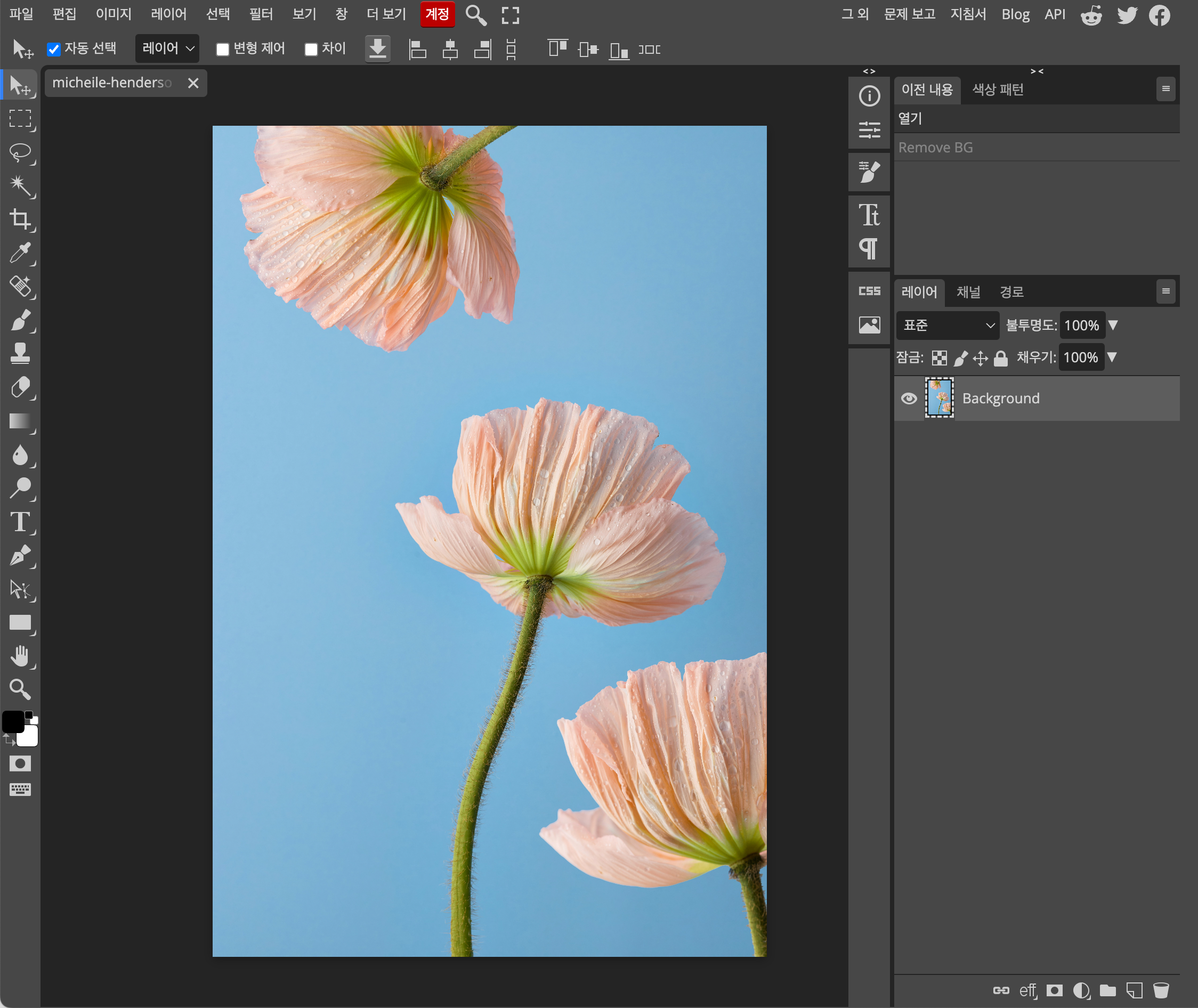 상단 메뉴바에서 파일 > 열기를 클릭하여 원하는 이미지를 불러옵니다.