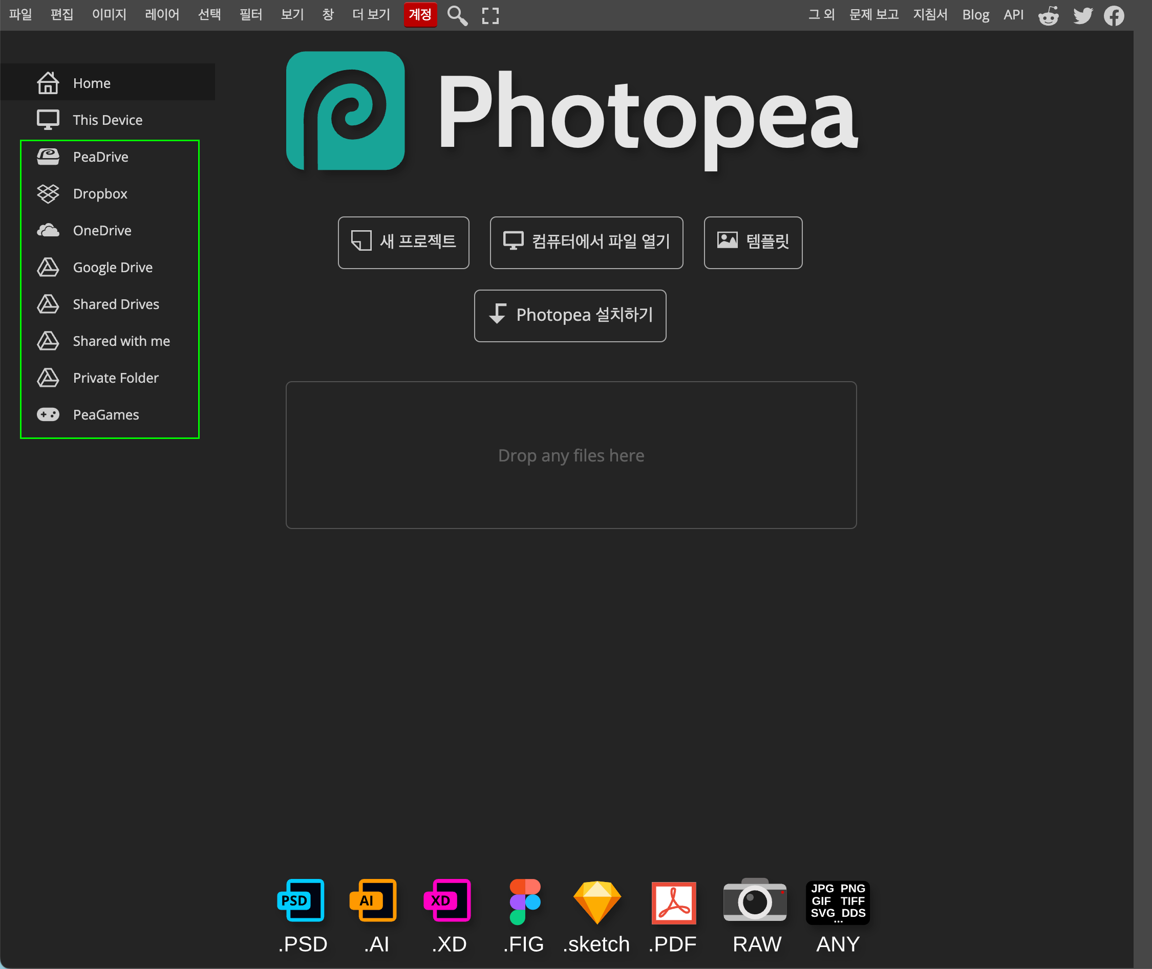 아래의 링크를 클릭하여 Photopea 디자인 편집 도구를 사용해 보세요.