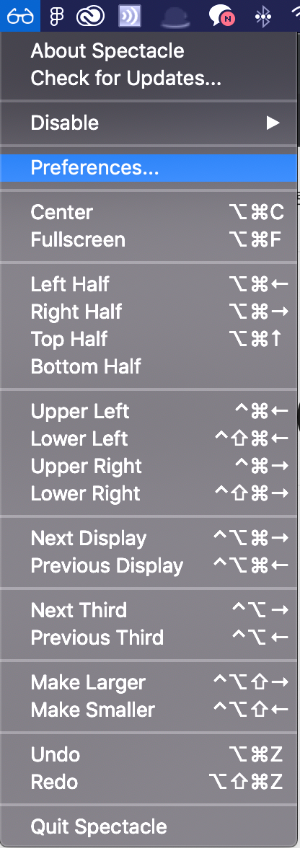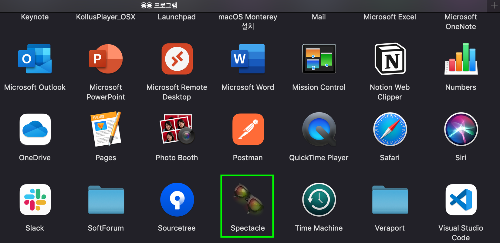우측 상단 메뉴바에 Spectacle 아이콘이 생성된 걸 확인하실 수 있습니다.