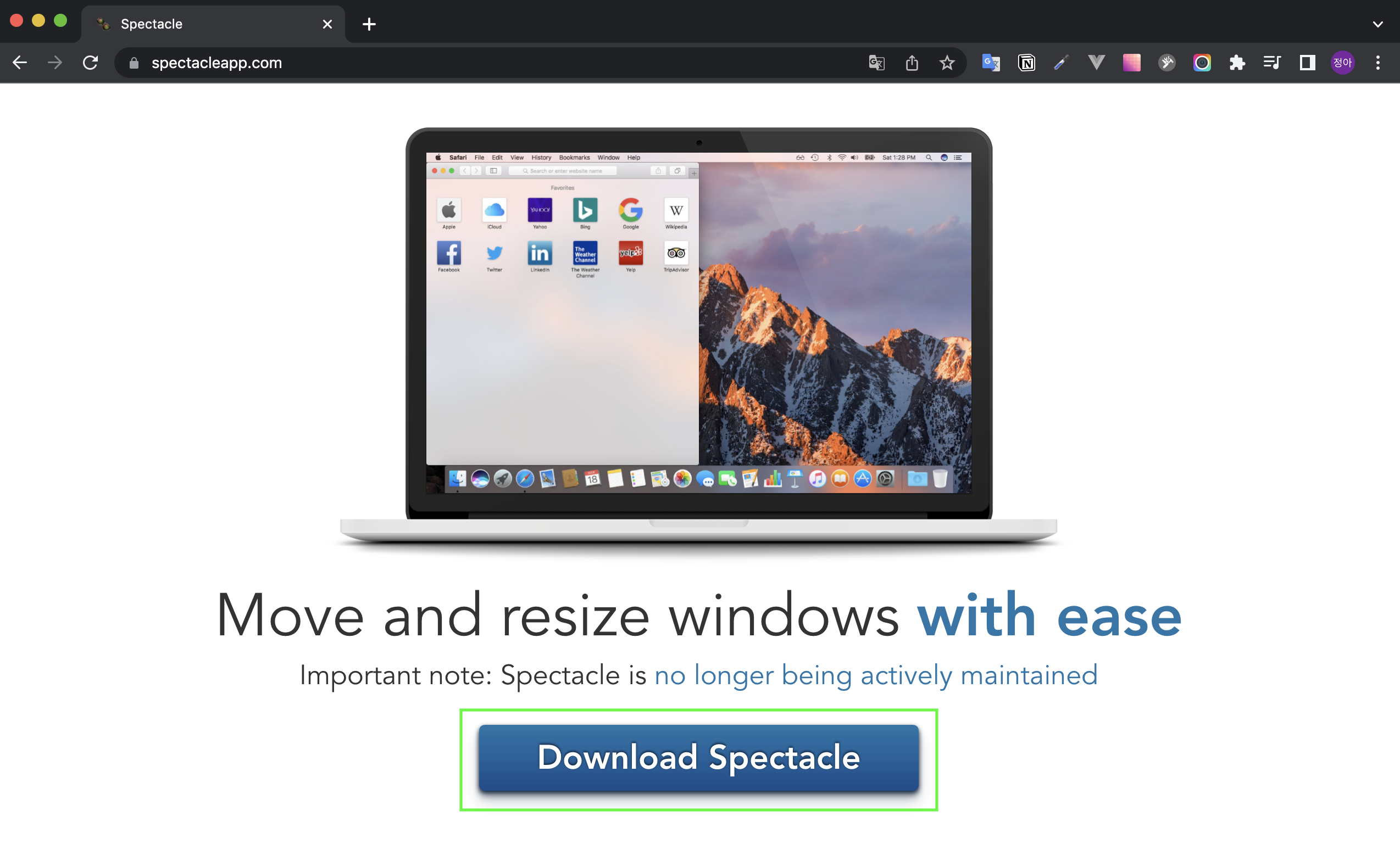 Spectacle 홈페이지에 접속하셔서 Download Spectacle 버튼 클릭하셔서, 다운로드하시면 됩니다.