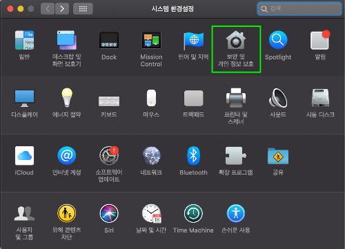 시스템 환경설정 > 보안 및 개인 정보 보호