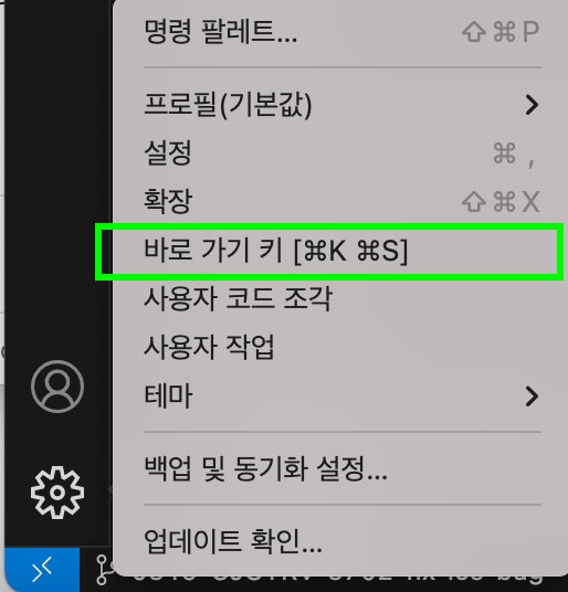 왼쪽 하단에 설정 아이콘 > 바로 가기 키 클릭하세요.