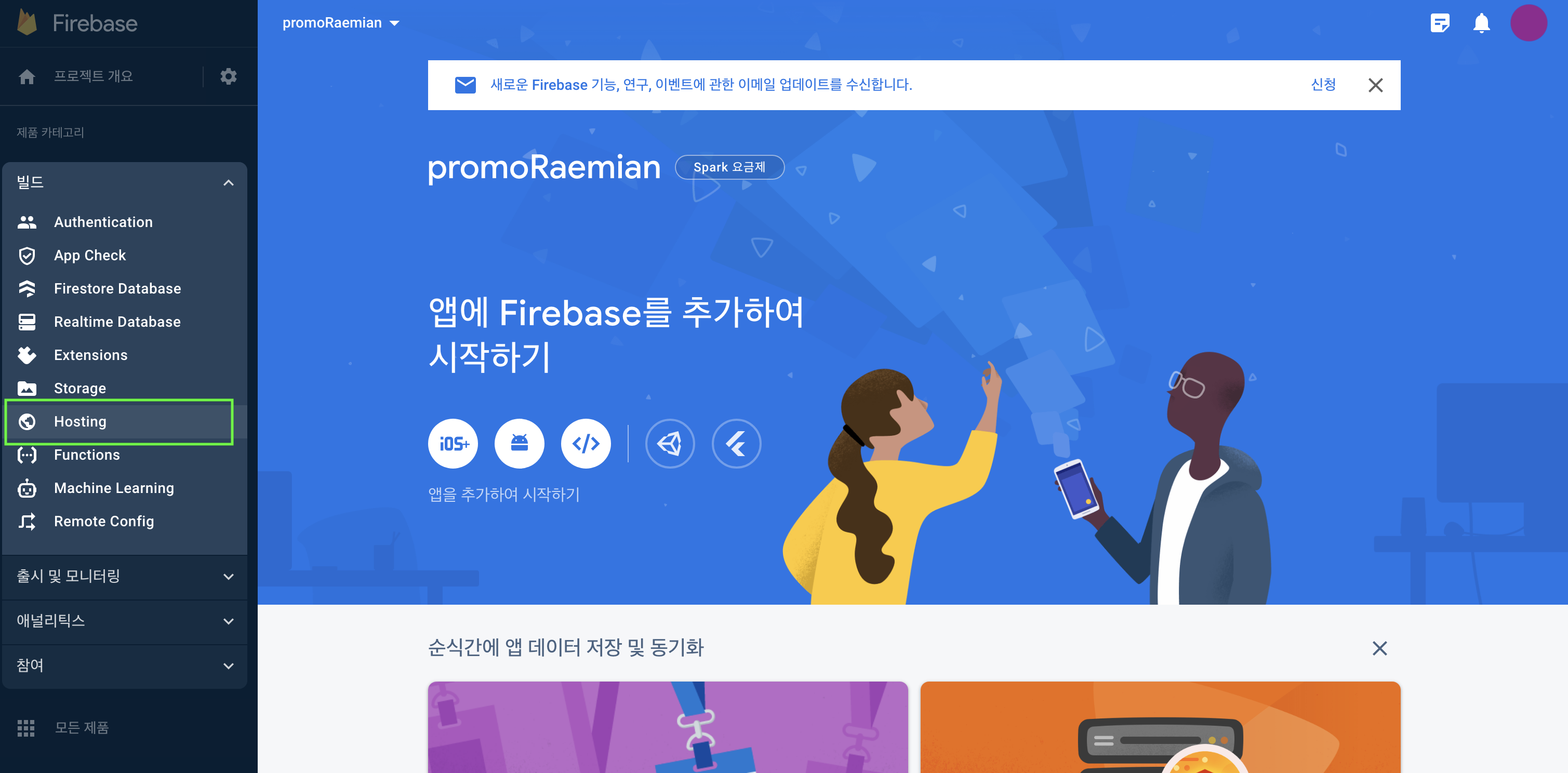 앱 생성이 완료된 후, 아래의 호스팅 설정을 이어가 봅시다.