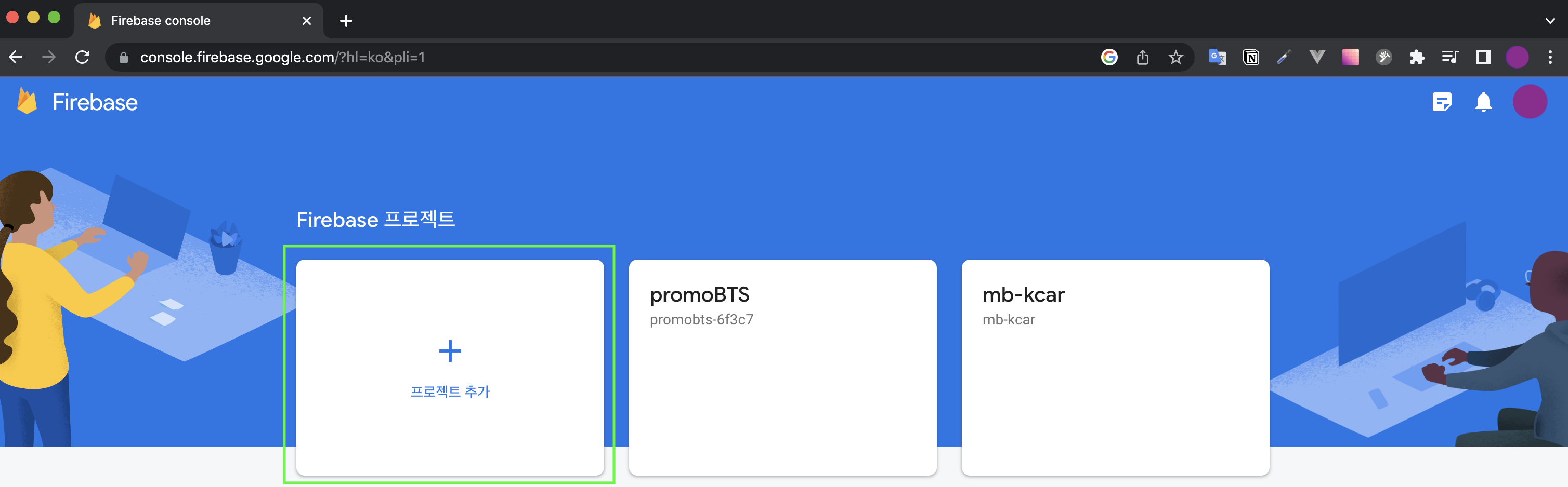 Firebase 홈페이지에 접속하셔서 계정을 생성하고 로그인합니다.