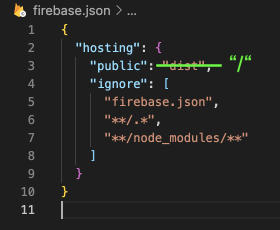 firebase.json 파일에서 hosting 설정을 확인하셔서 본인의 프로젝트 상황에 맞게 수정해 주시면 됩니다.