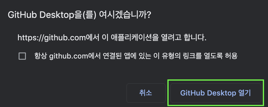2. Github Desktop 열기를 클릭해서 연동해 주세요.